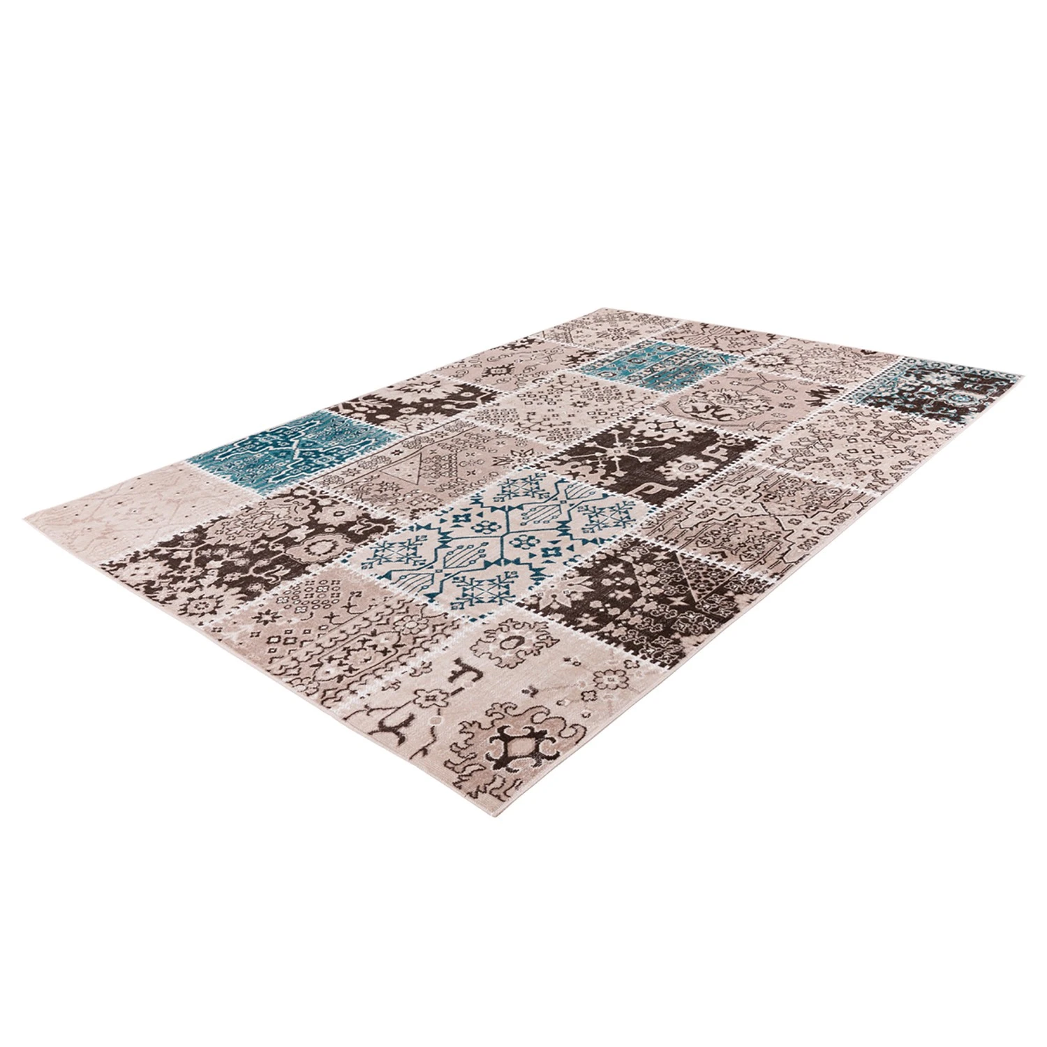 - Weitere Qualitätsmerkmale: Flachflorteppich im Patchwork-Design