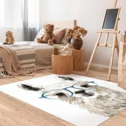 Bilderwelten Illustration Katze und Vogel Blau Rot – 70 x 140 cm – Durchmesser: 140 cm