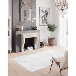 Top Square Kurzflorteppich Save I – Kunstfaser – Weiß / Grau