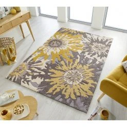 Flair Rugs Wollteppich Diamonds – Wolle – Ocker – 120 x 170 cm