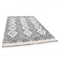 THEKO die markenteppiche Wollteppich Mora – Schurwolle / Baumwolle – Schwarz / Weiß – 90 x 160 cm